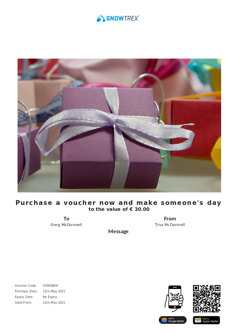 IE - SnowTrex - Gift voucher allows you to purchase instantly printable gift vouchers, special offers and tickets using the Voucher Connect platform.